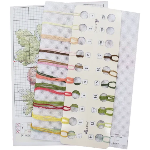 Набор для вышивания "Крыжовник". Размер готовой вышивки 11х9 см -17 цветов. В набор входит: Канва Aida 16 белая, Мулине Гамма 100% хлопок, разобранное на органайзере, 2 иглы, инструкция, символьная схема со слабой цветовой тонировкой.