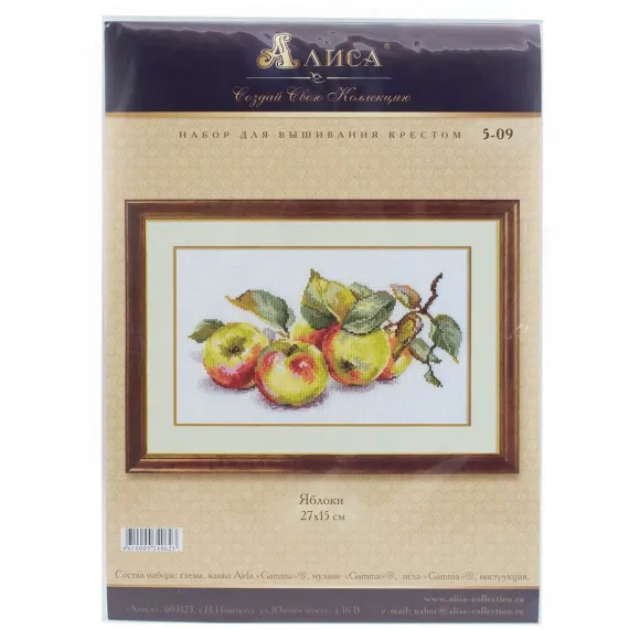 Алиса Набор для вышивания крестом 27х15см 5-09 Яблоки