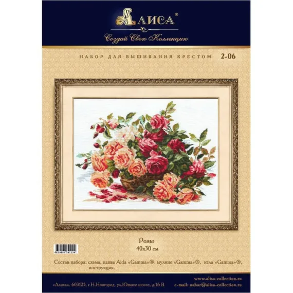 Алиса Набор для вышивания крестом 40х30см 2-06 Розы