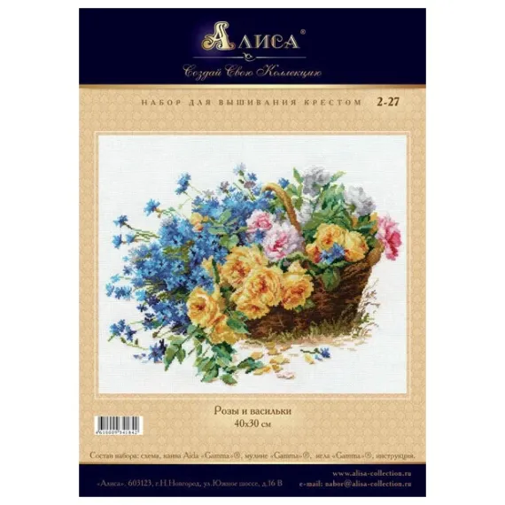 Алиса Набор для вышивания крестом 40х30см Розы и васильки