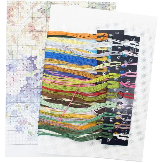Набор для вышивания содержит все необходимые материалы для вышивки на канве в технике счетный крест.