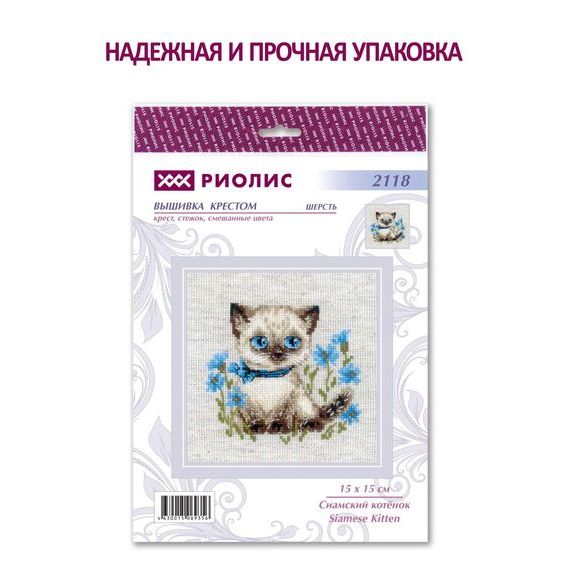 Riolis Набор для вышивания крестом 15х15см 2118 Сиамский котенок