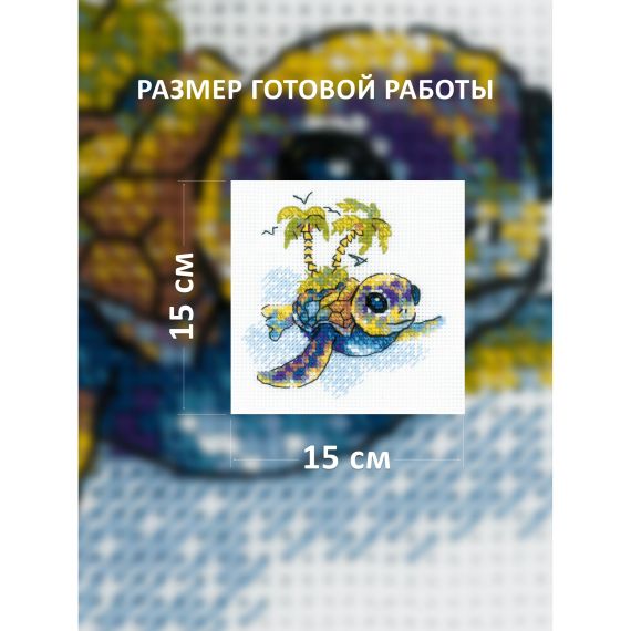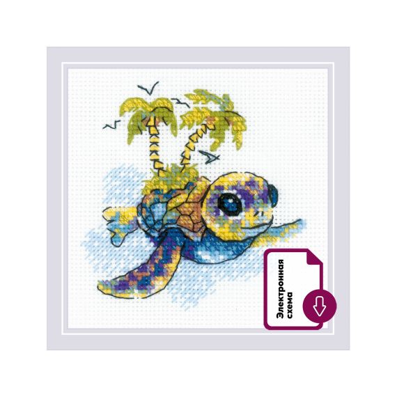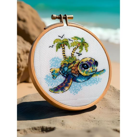 Вы сможете создать уникальное и неповторимое украшение комнаты, которое будет напоминать о ваших талантах и ручной работе. Вышивка крестиком - прекрасный подарок маме, бабушке, сестре, подруге на Новый Год, день рождения, новоселье и 8 марта. Вышивка переносит в атмосферу спокойствия и безмятежности морского побережья. На ней изображена черепашка, плавно скользящая по прозрачным водам у берега, окружённого стройными пальмами.