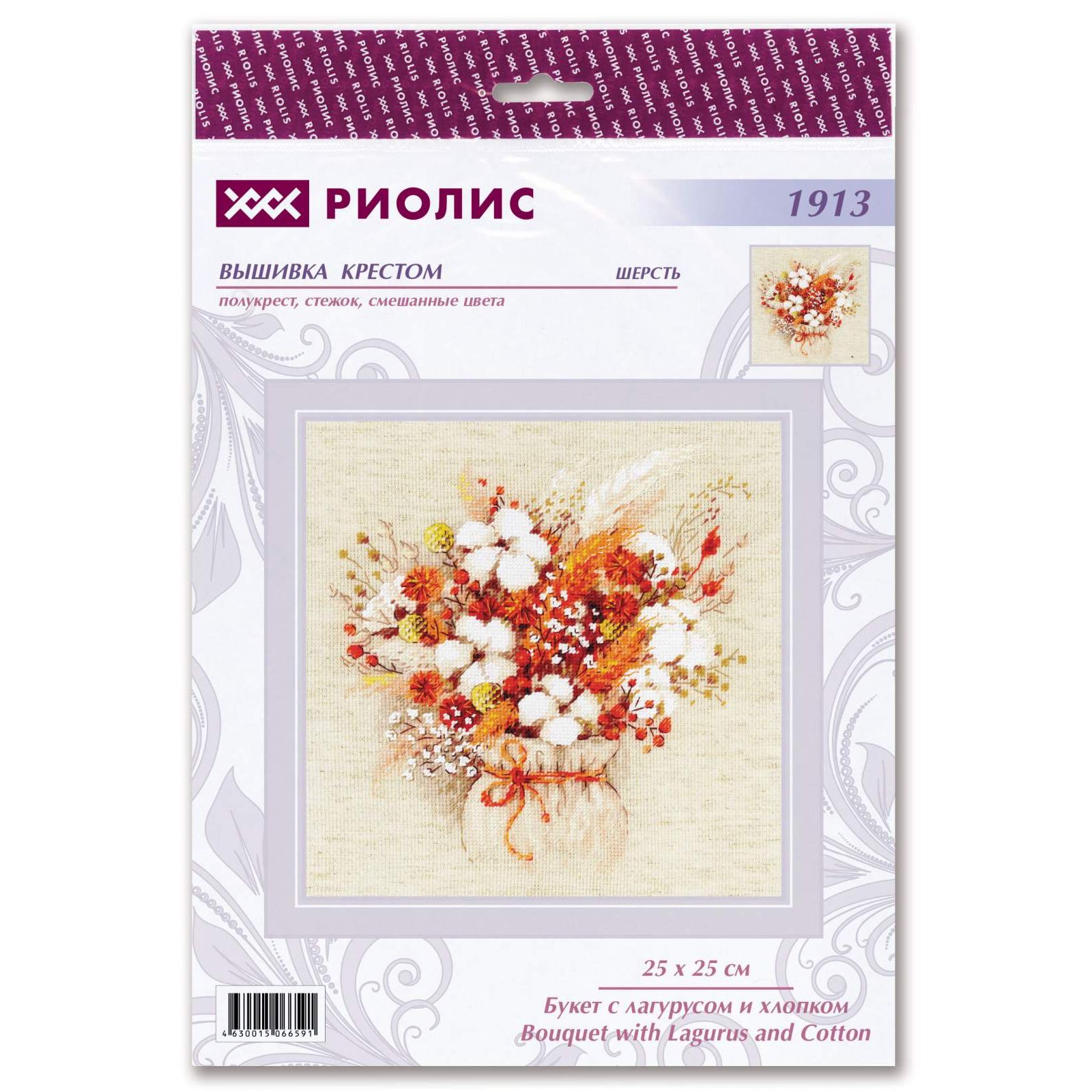 Riolis Набор для вышивания крестом 25х25см 1913 Букет с лагурусом и хлопком