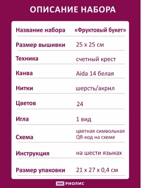Набор для вышивания крестом " Фруктовый букет " укомплектован: