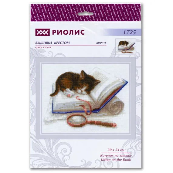 Riolis Набор для вышивания крестом 30х24см 1725 Котенок на книжке