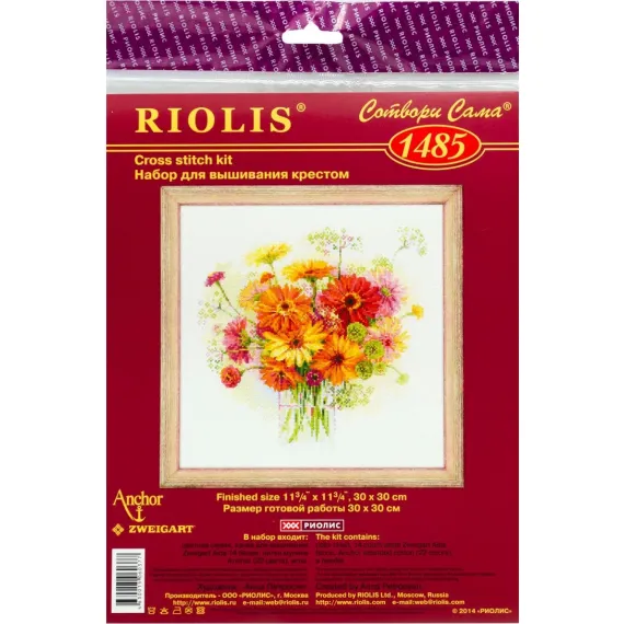 Riolis Набор для вышивания крестом 30х30см 1485 Акварельные герберы