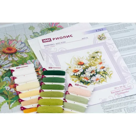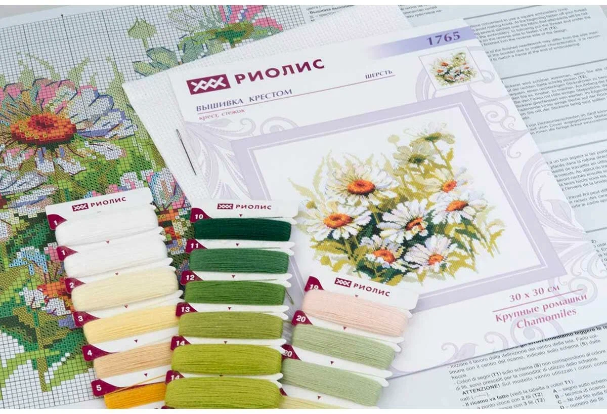 Набор для вышивания РИОЛИС "Крупные ромашки". Размер готовой работы 30x30 см. Количество цветов 21. В наборе: канва белая Aida 10ct Zweigart, нитки Safil, иголка, схема, инструкция на русском языке. Сюжет: цветы, ромашки, растения, природа, праздник. Вышивка крестом не оставит равнодушной ни одну рукодельницу, ведь яркие нитки создадут красивую картину вашими руками! Набор для вышивания – это готовый комплект материалов, которые понадобятся в процессе работы. В каждом наборе для рукоделия есть подробная инструкция на русском языке для начинающих, как правильно закреплять нить и укладывать стежки при вышивке. А также, представлены советы по дополнительным декоративным швам, бэкстичу и французским узелкам. Даже если вы никогда не пробовали вышивать, с готовым набором Риолис не возникнет трудностей. Вышивание – одно из приятнейших видов творчества и отличная возможность разнообразить досуг, отдохнуть от повседневных забот и погрузиться в умиротворяющее хобби.