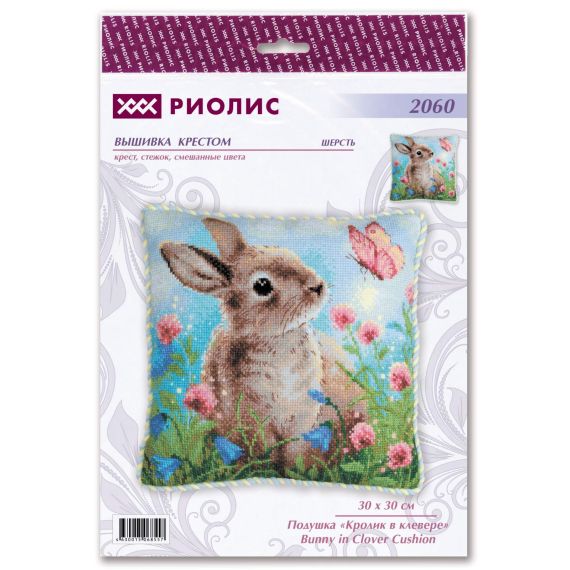 Riolis Набор для вышивания крестом 30х30см 2060 Подушка Кролик в клевере