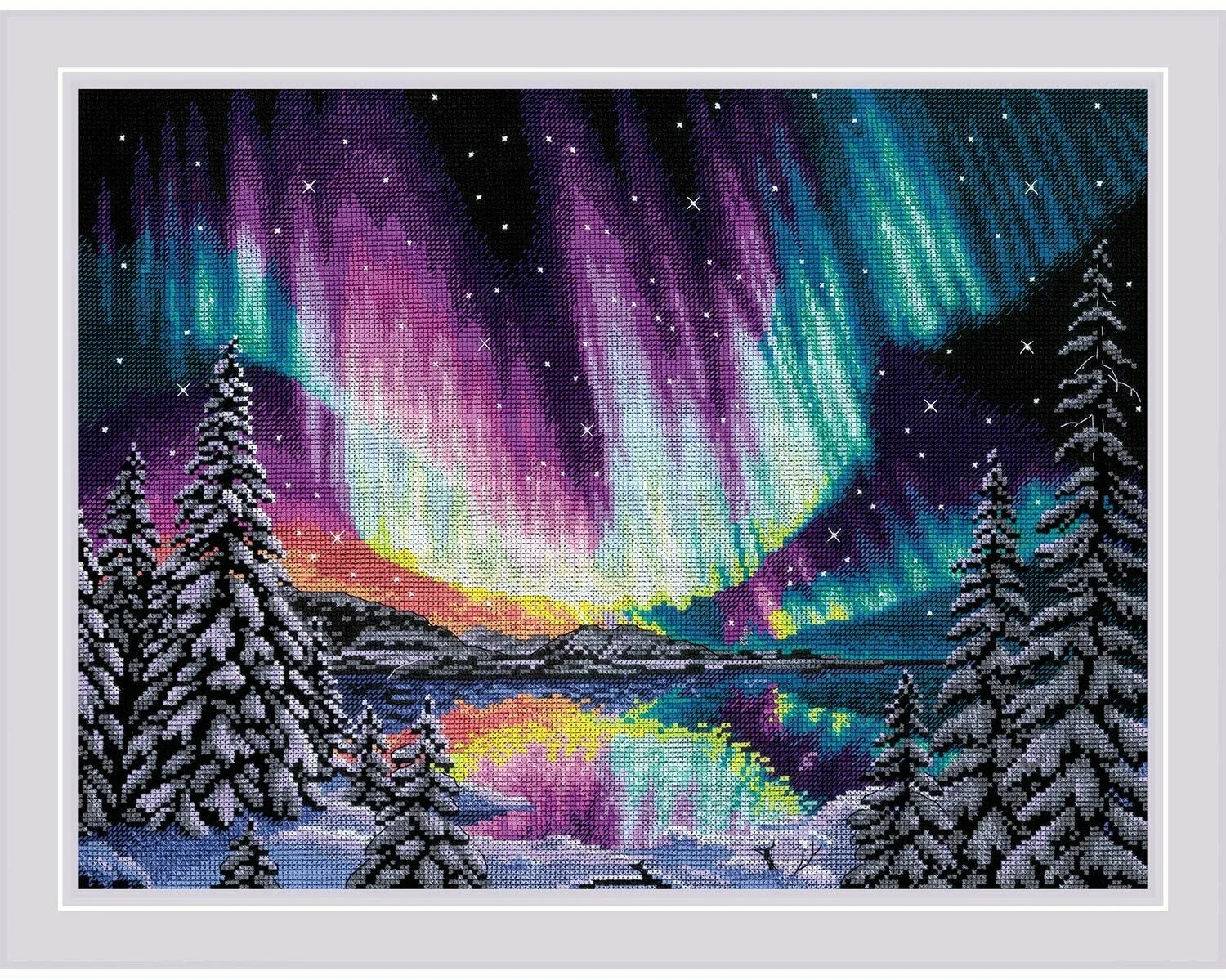 В набор входит: цветная символьная схема на бумажном носителе, электронная схема для скачивания, канва для вышивания без нанесенного рисунка Aida 14 черная, нитки мулине (29 цветов) на плашке(ах), игла. Размер готовой работы: 40х30 см. В наборе используются техники: крест, полукрест, стежок, смешанные цвета. В набор для вышивания Риолис 2038 Сказка Севера входит все необходимое для творческого процесса. Мы комплектуем наборы с запасом ниток в 20% от необходимого количества каждого цвета. Благодаря нашим наборам творчество доступно каждому! Просто выберите дизайн по душе и становитесь его создателем.