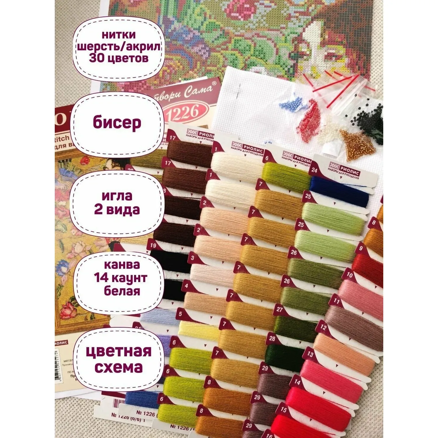 В наборе для вышивания крестом "Дама с веером" используются техники: счётный крест, стежок, смешанные цвета, металлизированная нить, бисер. В наборы Риолис входит все необходимое для творческого процесса. Мы комплектуем наборы с запасом ниток в 20% от необходимого количества каждого цвета. Благодаря нашим наборам творчество доступно каждому! Просто выберите дизайн по душе и становитесь его создателем. Размер готовой работы: 35х35 см. Комплектация: канва для вышивания без нанесённого рисунка 14 белая, нитки мулине шерсть/акрил 30 цветов на плашке(ах), металлизированная нить, бисер 5 видов, простая для понимания цветная символьная схема для вышивания крестом, игла для вышивания, игла для бисера, инструкция.
