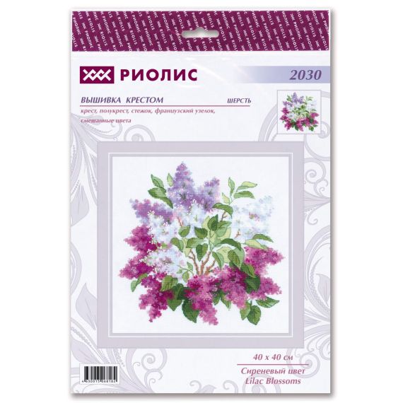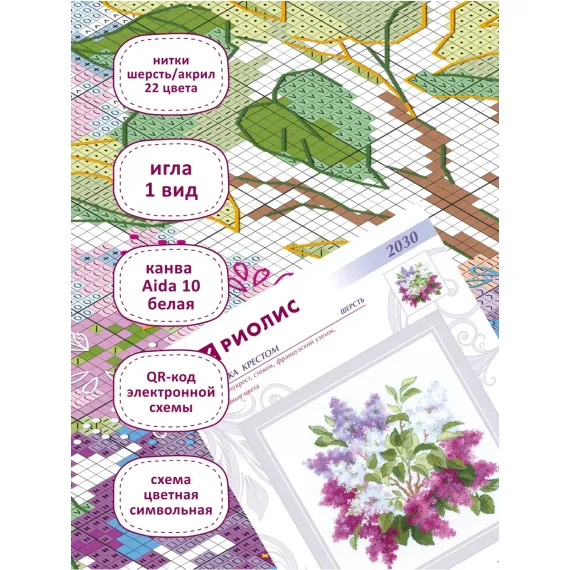 Набор для вышивания крестиком Сиреневый цвет 2030, продажа от производителя! В набор входит: цветная схема, канва для вышивания без нанесенного рисунка Zweigart Aida 10 белая, нитки шерсть/акрил (22 цвета) на плашках, игла. Размер готовой работы: 40х40 см. В наборе используются техники: крест, полукрест, стежок, французский узелок, смешанные цвета. Букет сирени - любимый символ весны и начала лета. Теперь в набор входит и электронная схема!