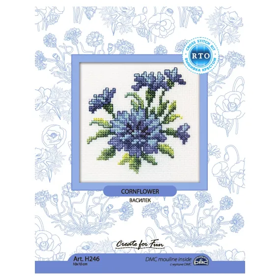 RTO Мини набор для вышивания крестом с рамкой 10х10см Василек