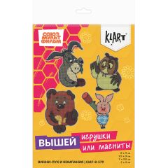Эксклюзивная серия наборов по лицензии "Союзмультфильм". Набор предполагает вышивание 4 персонажей в виде магнитов или подвесок. В набор для вышивания Klart входит: пластиковая канва Gamma, хлопчатобумажные нитки мулине Gamma на держателе, игла для вышивания Gamma, фетр, атласные ленты, магнит...