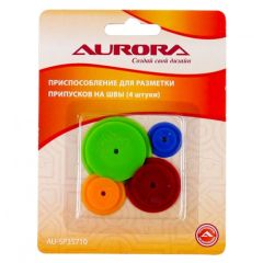 Приспособление для разметки припусков на швы AURORA , 4 предмета Приспособление для разметки припусков на швы поможет быстро разметить припуски на швы по готовому бумажному (картонному/пластиковому) шаблону. В центр приспособления вставляется карандаш или маркер, а край шаблона вставляется в...