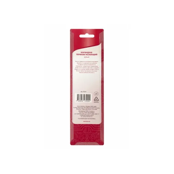 Карандаш Aurora AU-701P с термоисчезающим эффектом предназначен для точной разметки тканей при пошиве одежды и других текстильных изделий. Этот инструмент позволяет легко наносить временные метки, которые исчезают под воздействием высокой температуры, что делает его идеальным для работы с деликатными материалами. Белый цвет меток особенно полезен при работе с тёмными тканями, где требуется высокая видимость разметки.