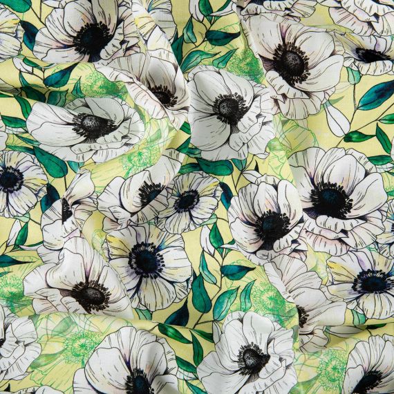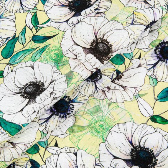 Коллекция представляет собой отражение изысканности и утонченности природы в цветах. Удивительные анемоны привлекают внимание своим изяществом. Все элементы прорисованы с вниманием к деталям, придавая ткани живость и динамику.