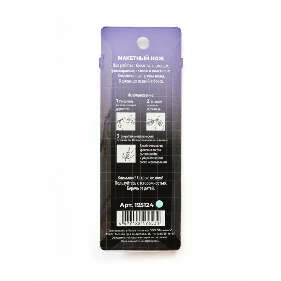 Нож скальпель металлический используется для резки бумаги, картона, фоамирана, тканей, пластика и др. Новый стильный дизайн: корпус из прочного, но, в то же время, легкого пластика с эргономичной формой не даст руке устать даже при длительном использовании, на конце ручки имеется шарик, которым можно сделать биговку линий для легкого сгиба бумаги – теперь не надо иметь несколько инструментов под рукой, например при изготовлении открыток. Также на корпусе ручки для пальцев имеется ребристый участок, с которым макетный нож-скальпель не выскользнет из рук. Цанга, удерживающая лезвие, металлическая и надежно закреплена в ручку, для смены лезвия необходимо раскрутить металлический держатель и заменить лезвие. Лезвия – 4 мм, удобной формы, которая позволяет во время работы делать высокоточный разрез, менять направление и наклон ножа. Для безопасного хранения или транспортировки нож канцелярский имеет колпачок, который защитит острое лезвие при падении или от случайного пореза. Для получения самого лучшего результата и точной резки рекомендуем использовать канцелярский нож только на специальных матах для резки. Макетный коврик для резки помогает сохранять лезвия ножа в рабочем состоянии долгое время, не затупливая их и не обламывая. В комплект входит 7 сменных лезвий в пластиковом боксе.