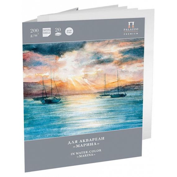 Папка для рисования акварелью МАРИНА Лилия Холдинг - с тиснением Скорлупа. C одной стороны бумага тисненая, с другой - гладкая, производства СПБФ Гознака. Плотность бумаги 200 гр., цвет естественно-белый, формат А4. Бумага быстро впитывает воду и хорошо удерживает красочный пигмент. Подходит для работ акварелью и гуашью, можно использование для мягких сухих графических материалов.