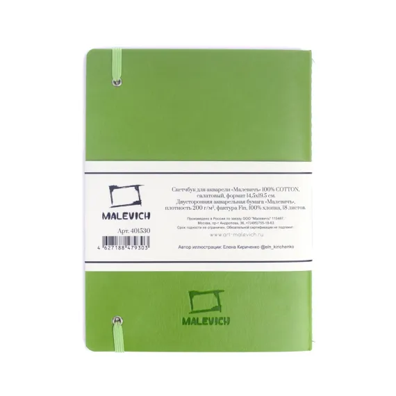 Малевичъ Скетчбук для акварели 100% хлопок 14.5х19.5см 18л 200гр Салатовый