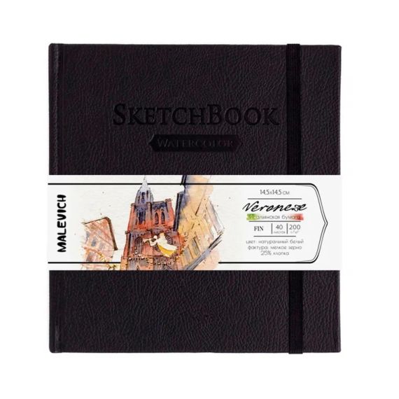 Малевичъ Скетчбук для акварели Veroneze 14.5х14.5см 40л 200г/м2 Черный