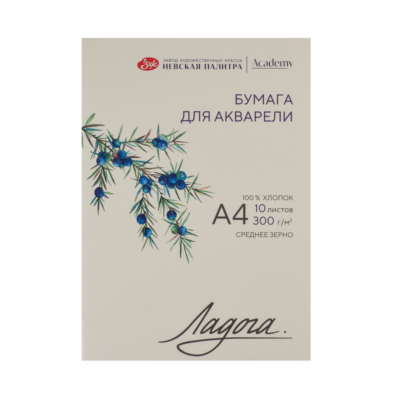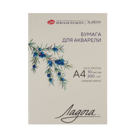 Ладога Папка для акварели А4 10л 300гр 100% хлопок среднее зерно