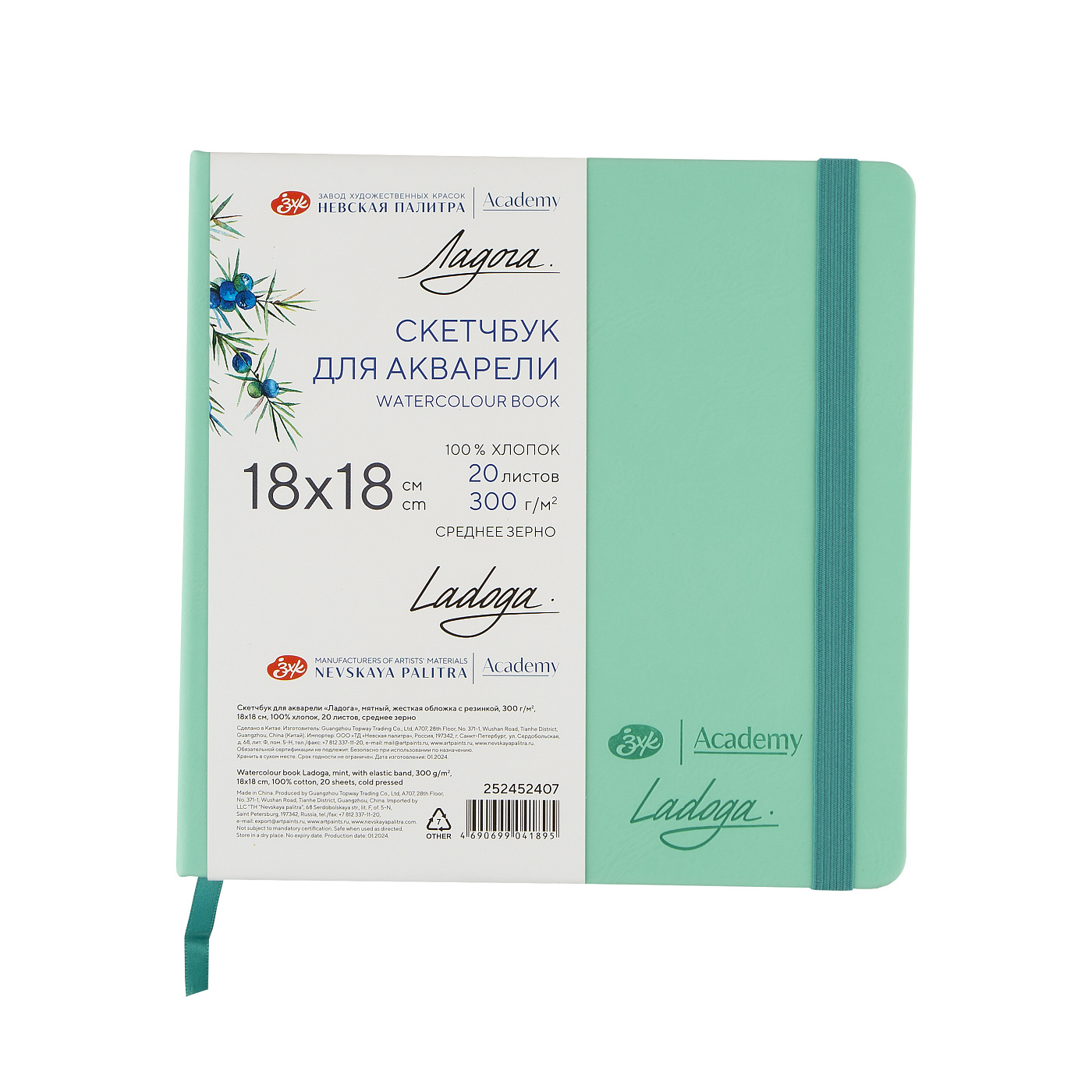 Ладога Скетчбук для акварели 18х18см 20л 300гр с резинкой Мятный 100%хл среднее зерно