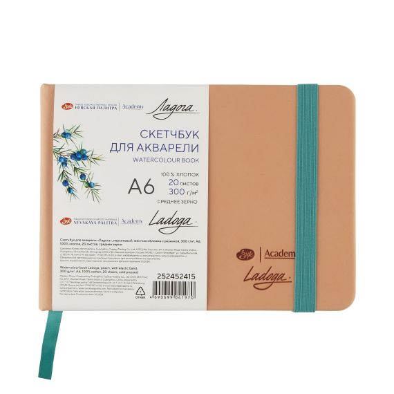 Ладога Скетчбук для акварели А6 20л 300гр с резинкой Персиковый 100%хл среднее зерно