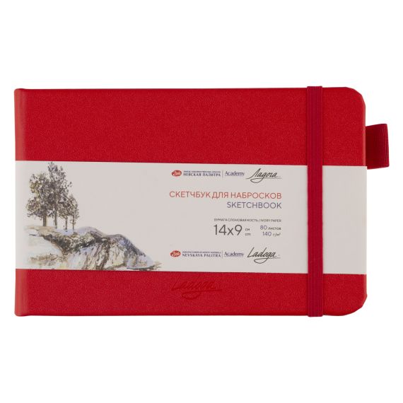 Ладога Скетчбук для набросков 9х14см 80л 140гр Красный 78072