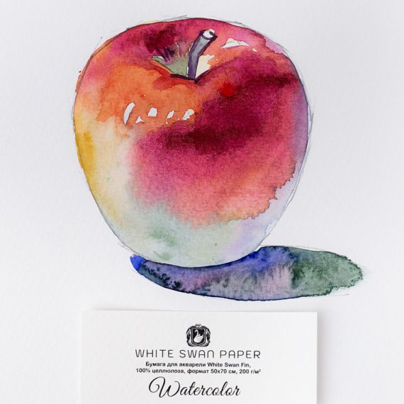 В папке Малевичъ с акварельной бумагой с мелким зерном Fin плотностью 200 г/кв.м, 100% целлюлоза.