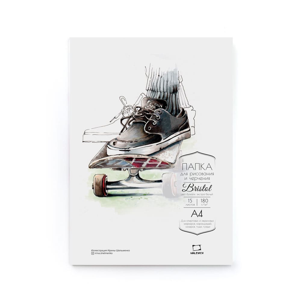 Малевичъ Папка с бумагой для графики и маркеров А4 15л 180гр Bristol