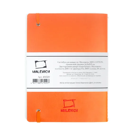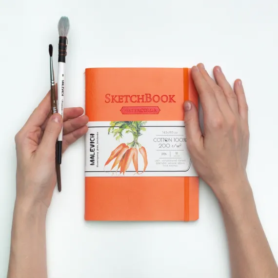 Малевичъ Скетчбук для акварели 100% хлопок 14.5х19.5см 18л 200гр Оранжевый