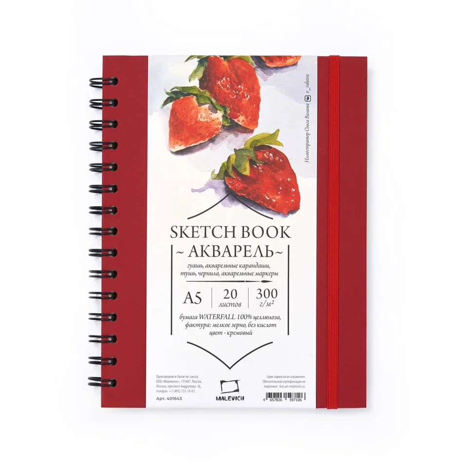 Малевичъ Скетчбук для акварели 15х20см 20л 300гр Nature Lite 100% целлюлоза WaterFall Красный