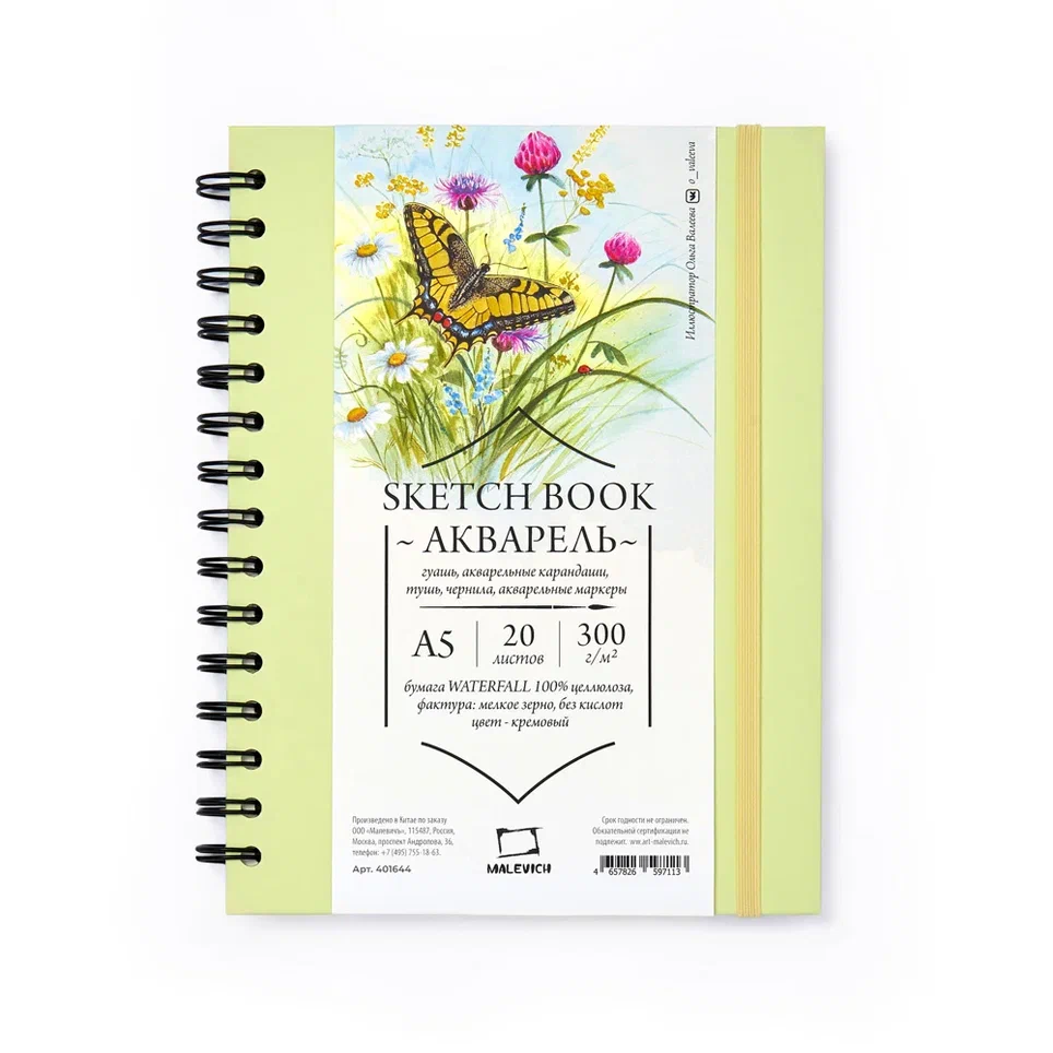 Скетчбук для акварели на спирали Малевичъ "WaterFall" 15х20 см - качественный и универсальный продукт для работы с акварелью.