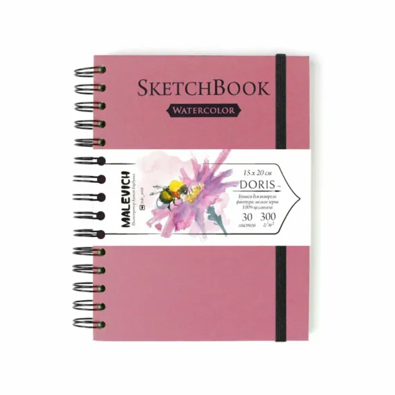 Малевичъ Скетчбук для акварели Doris 100% целлюлоза 15х20см 30л 300гр Розовый