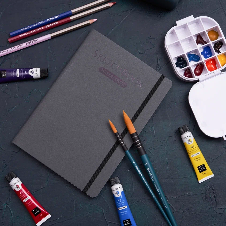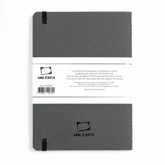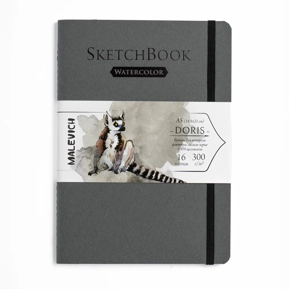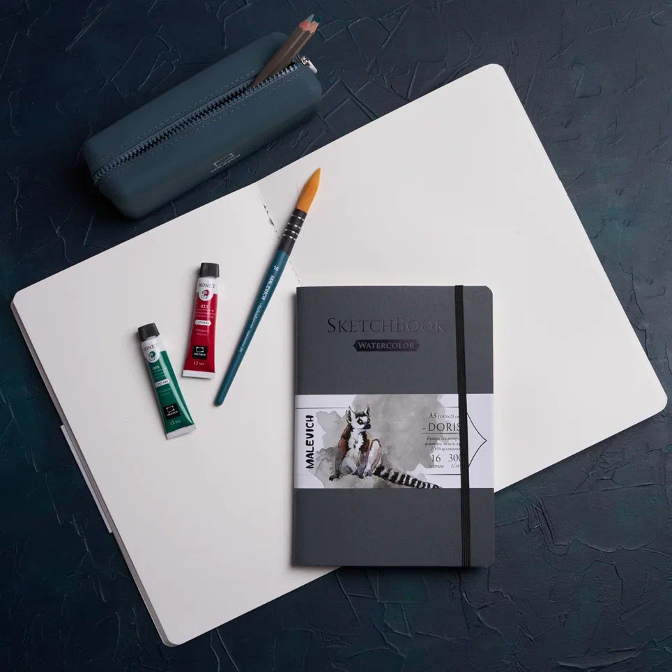 Малевичъ Скетчбук для акварели Doris 100% целлюлоза А5 16л 300гр Графитовый