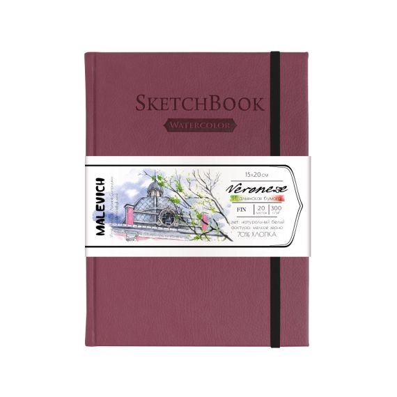 Малевичъ Скетчбук для акварели Veroneze А5 20л 300г/м2 Винный