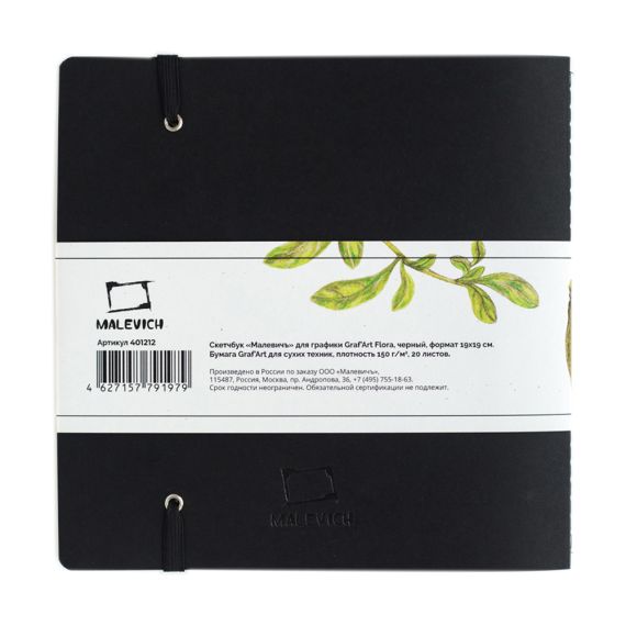 Малевичъ Скетчбук для графики 19х19см 20л 150г/м2 Graf'Art Черный