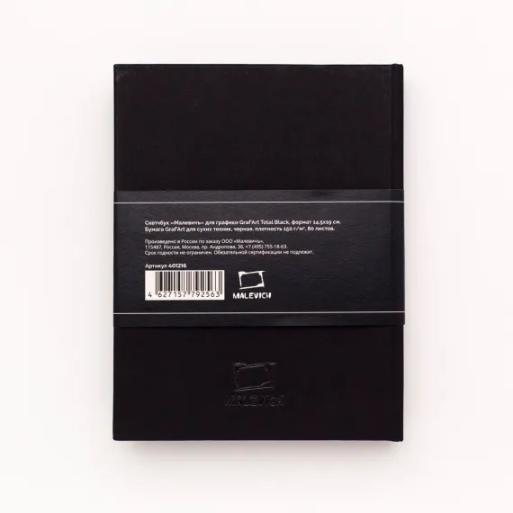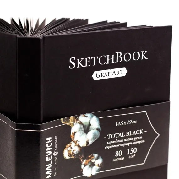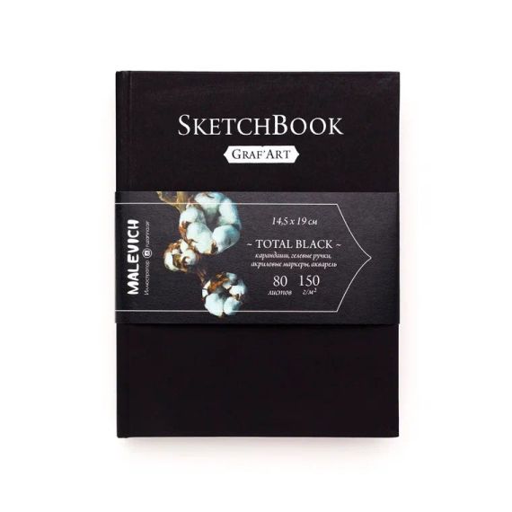 Малевичъ Скетчбук для графики Graf'Art 14.5x19см 80л 150г/м2 Total Black
