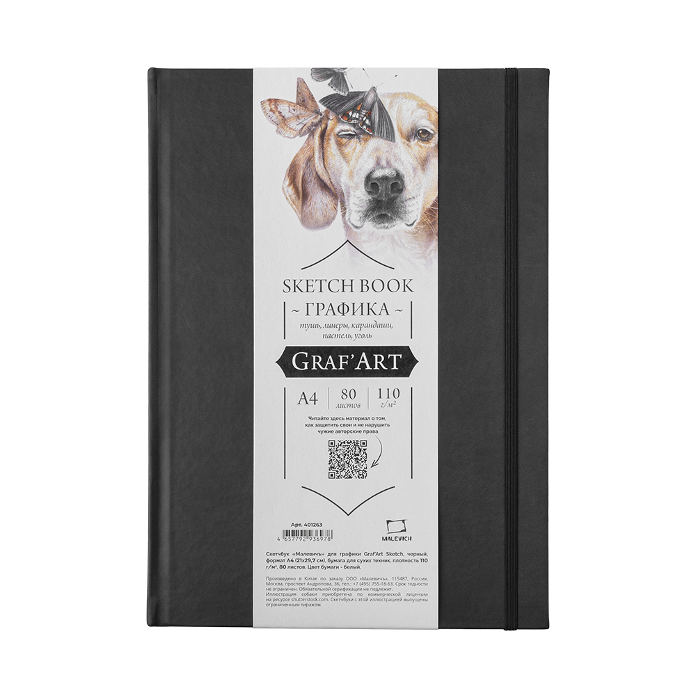 Малевичъ Скетчбук для графики Graf'Art А4 80л 110г/м2 Черный