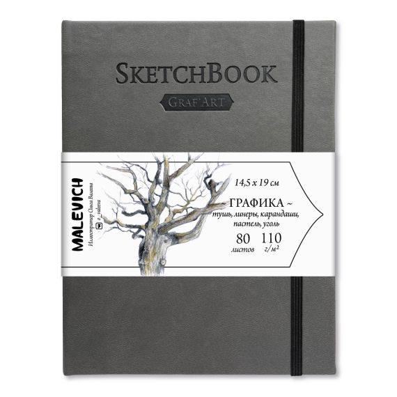 Малевичъ Скетчбук для графики GrafArt Sketch 14.5х19см 80л Серый
