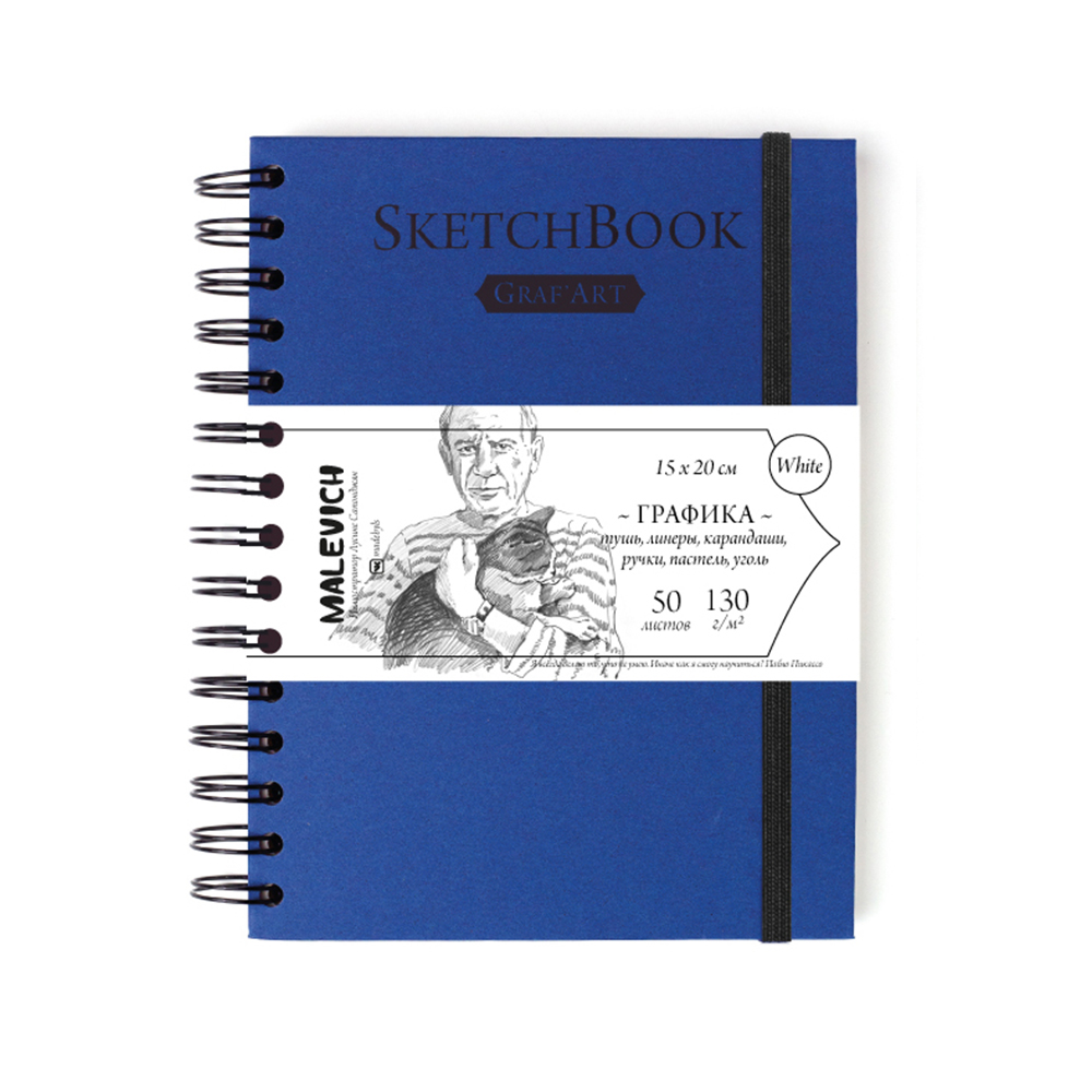 Малевичъ Скетчбук для графики GrafArt white 15x20см 50л 130гр Синий