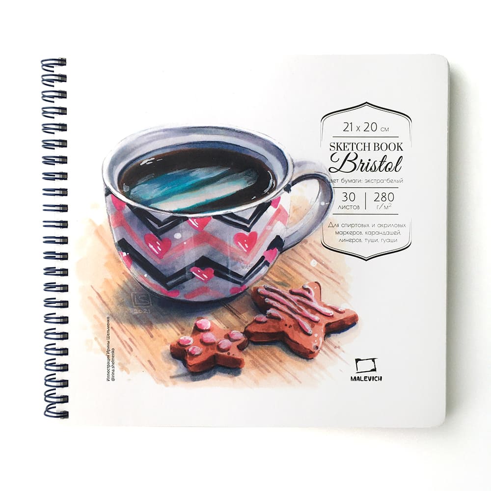 Малевичъ Скетчбук для графики и маркеров Bristol 21х20см 30л 280г/м2