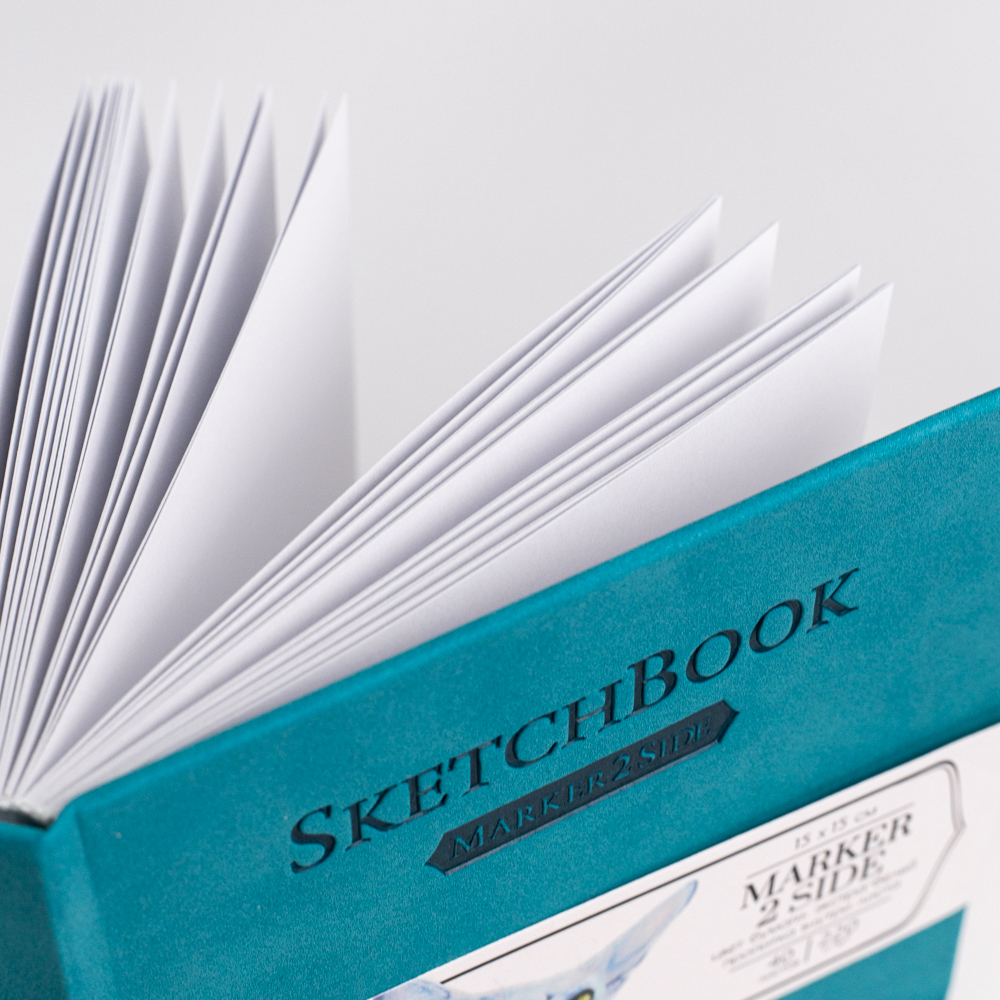 Cкетчбук с двусторонней маркерной бумагой с плотностью 220 гр/м2. Рисовать можно с обеих сторон, ни капли чернил не попадет на следующий лист. Можно рисовать в реалистичной манере с максимально большим количеством слоев.