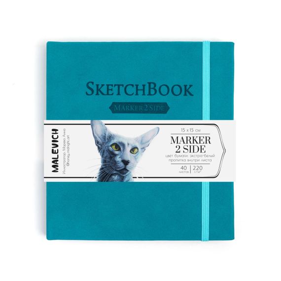Малевичъ Скетчбук для маркеров двусторонняя бумага 15х15см 40л 220гр Бирюзовый