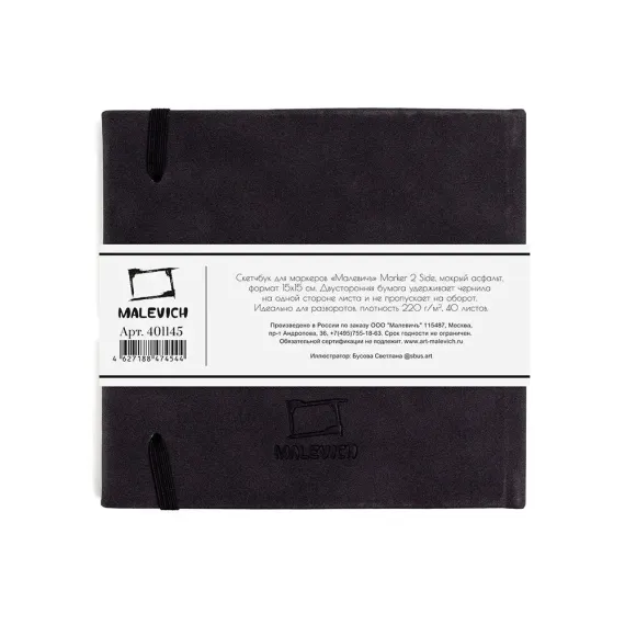 Малевичъ Скетчбук для маркеров двусторонняя бумага 15х15см 40л 220гр Мокрый асфальт
