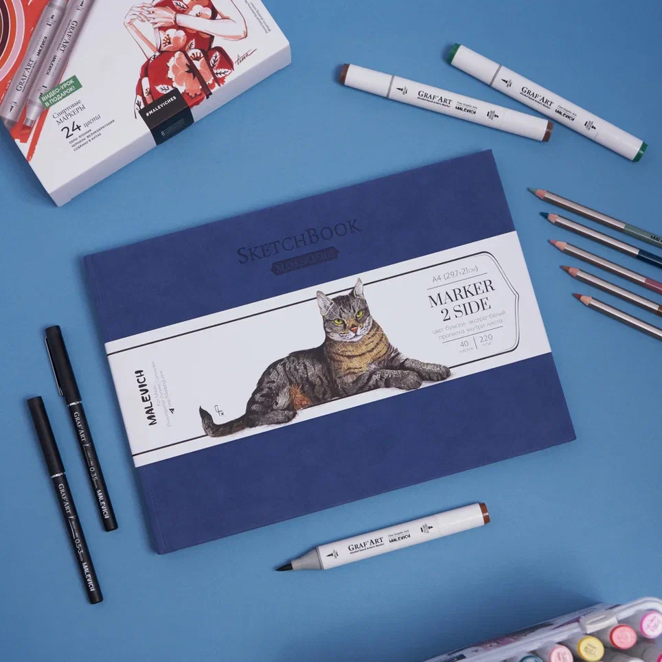 Малевичъ Скетчбук для маркеров двустронняя бумага А4 40л 220гр Синий