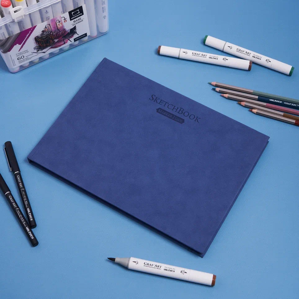 Скетчбук для маркеров Малевичъ А4 - этот альбом станет идеальным выбором для любителей творчества, работающих спиртовыми маркерами. Его особенность — двусторонняя бумага с особым покрытием, предотвращающим появление следов краски на обратной стороне листа. Это позволяет создавать рисунки сразу с двух сторон каждой страницы.