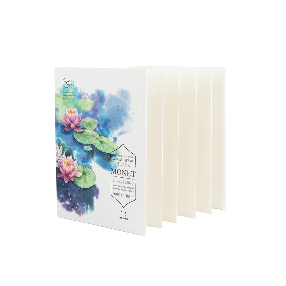 Малевичъ Скетчбук-гармошка для акварели 15х20см 10л 300гр Monet