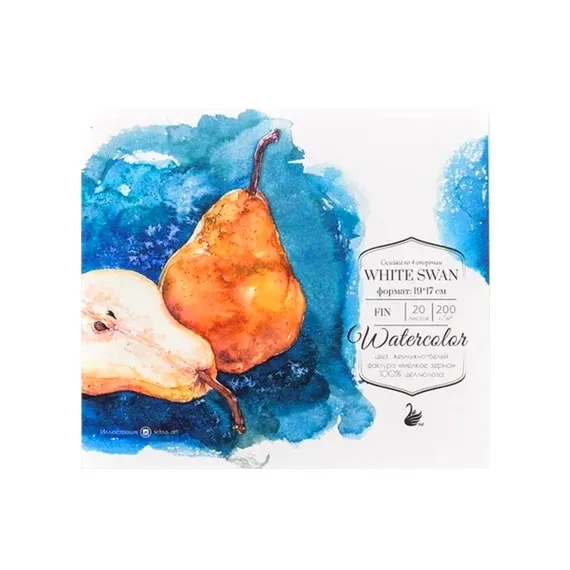 Склейка для акварели из бумаги "White Swan" от компании Малевичъ. Это плотная (200г/м2) бескислотная высококачественная бумага из 100% целлюлозы. Бумага позволяет делать очень яркие работы, цвета отлично смешиваются и остаются сочными, не замыливаются и не жухнут. Бумага дополнительно отбелена, что также усиливает яркость красок. Благодаря специальной пропитке влага на поверхности высыхает медленно, что дает возможность заливке равномерно растечься, а также вовремя внести коррективы.